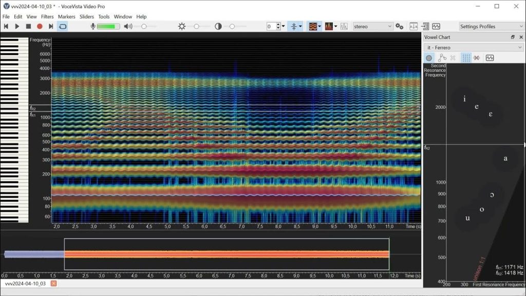 VoceVista Video can help you improve by making your invisible vocal behaviors visible. Advanced singers and coaches can use this to analyze recordings and see exactly how pitch stability, vibrato width, and resonance change across registers or phrases. This is especially useful for diagnosing persistent technical issues that aren’t obvious by ear alone.